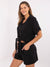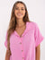 Kurzärmelige Musselinbluse mit Bindeknoten und Knopfleiste