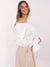 Weiße schulterfreie Bluse mit Spitze und Smoktaille – romantischer Boho-Stil