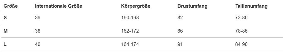 Modell Maße: Höhe 168 cm, Fehlschlag 82 cm, Taille 62 cm, Hüfte 93 cm