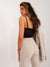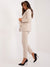 Dieser elegante Damenanzug beinhaltet einen taillierten Blazer und eine gerade geschnittene Hose mit hohem Bund.