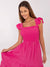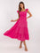 Das Midikleid begeistert mit einem figurschmeichelnden, elastischen Smok-Oberteil, das deine Silhouette perfekt betont. Verspielte Volantträger und ein weit schwingender, mehrstufiger Rock sorgen für eine luftige und romantische Ausstrahlung.