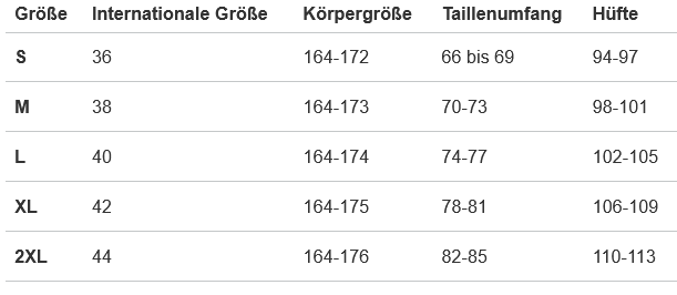 XXL: Breite Taille - 42 cm, Gesamtlänge - 98 cm, Höhe Taille-33 cm