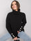 Die dekorativen Knöpfe an den Ärmeln verleihen dem Strickpullover eine elegante Note.