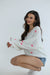 Dieser Pullover mit V-Ausschnitt und Herzchenmuster verkörpert zeitlosen Charme und romantisches Design.