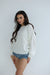 Dieser wunderschöne Pullover mit klassischem Rundhalsausschnitt verkörpert zeitlosen Charme und Romantik.