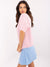 Weicher Grobstrick-Pullover mit kurzen Ärmeln – Beige, Rosa & Blau