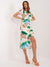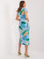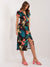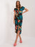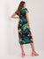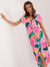 Der V-Ausschnitt, der Schlitz vorne und die kurzen Ärmel verleihen dem Kleid eine vielseitige Trageoption.