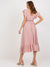 Verspieltes Damen Sommerkleid mit Rüschensaum und Rüschenärmeln und Rücken V-Ausschnitt