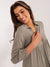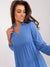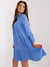 Lange Ärmeln, V-Ausschnitt, leichter Stehkragen, sowie weiter, luftiger Schnitt zeichnen dieses Kleid aus
