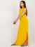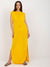 Langes Damen Sommerkleid mit Schlitzen. Strickkleid mit geriffelten Rundhalsausschnitt.