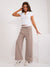 Entdecken Sie die stylische Damen Sommerhose mit doppelter Taille und hohem Bund.
