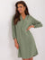 Damenkleid mit 3/4 Ärmeln und V-Ausschnitt in Hemdstyle S-XL