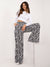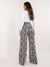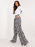 Das Set, bestehend aus einem Crop-Top mit langen Ärmeln und einer weiten Hose, ist mit einem trendigen Tiermuster verziert.