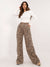 Modischer Causal Hosenanzug - Freizeitanzug mit Tiermuster - Set Crop-Top mit langen Ärmeln und weiter Hose