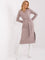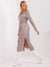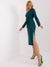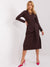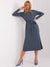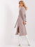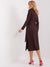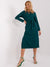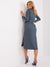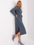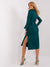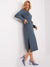 Midi Kleid mit dekorativen V-Ausschnitt, Gürtel und Schlitz - Kleid mit langen Ärmeln