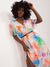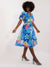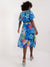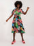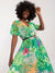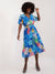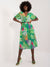 Damen Plissee Kleid mit kurzen Ärmeln und V-Ausschnitt - Blumen Plissee Kleid Damen