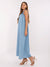 Maxikleid Trägerkleid Rüschen Schleife Rücken Jeans-Optik Sommerkleid luftig Boho Look
