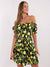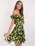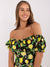 Schulterfreies Sommerkleid mit Zitronenprint – ausgestellter Schnitt, elastisches Oberteil