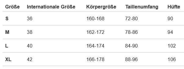 XL: Width waist - 38cm, height waist - 30cm, total length - 96cm
