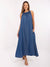 Maxikleid A-Linie ärmellos Jeans-Optik Knopfleiste Rücken Sommerkleid luftig elegant Boho Look