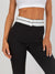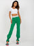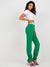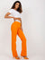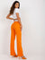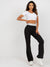 Women's trousers with a high waist and a flared leg. The waist is emphasized in white, which flatters the figure. The trousers can be combined in many ways and worn in everyday life such as work, leisure and events.
