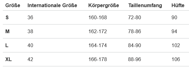 XL: Waist width - 41 cm, total length - 97 cm, waist height - 28 cm