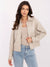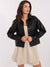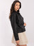 Kurze Damenjacke aus Kunstleder mit Kragen und Druckknöpfen