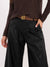 Modische Kunstlederhose mit Gürtel und weitem Schnitt