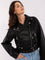 Diese stylische Bikerjacke für Damen überzeugt durch ihren rockigen Look und markante Details. Das hochwertige Kunstleder in Kombination mit dekorativen Reißverschlüssen, Druckknöpfen und Taillengürtel verleiht jedem Outfit eine edgy Note. Der kurze Schnitt betont die Figur und lässt sich ideal zu Jeans, Kleidern oder Röcken kombinieren – ein Must-have für coole Übergangs-Looks.