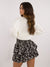 Der verspielte Rüschensaum und das trendige Tiermuster machen ihn zu einem Hingucker.